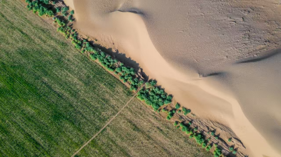如今,这里的年降水量从过去的70毫米跃升至380毫米,狐狸、野兔在绿洲间灵活穿梭;连乌雕、黑鹳等国家一级保护动物也成了“常客”,在绿洲的天空盘旋。这片曾经的不毛之地,正以蓬勃的生命力宣告着新生。